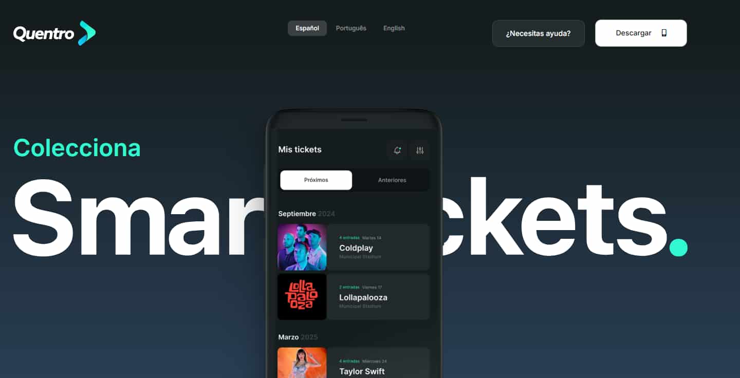 Quentro se posiciona como una plataforma de “Smart Tickets” que lleva la gestión de entradas al siguiente nivel. Su propuesta de valor es clara y contundente: almacenar, transferir y coleccionar entradas directamente desde tu dispositivo móvil. Esta aplicación disponible tanto para iOS como Android transforma la experiencia del usuario al digitalizar completamente el proceso de manejo de tickets.